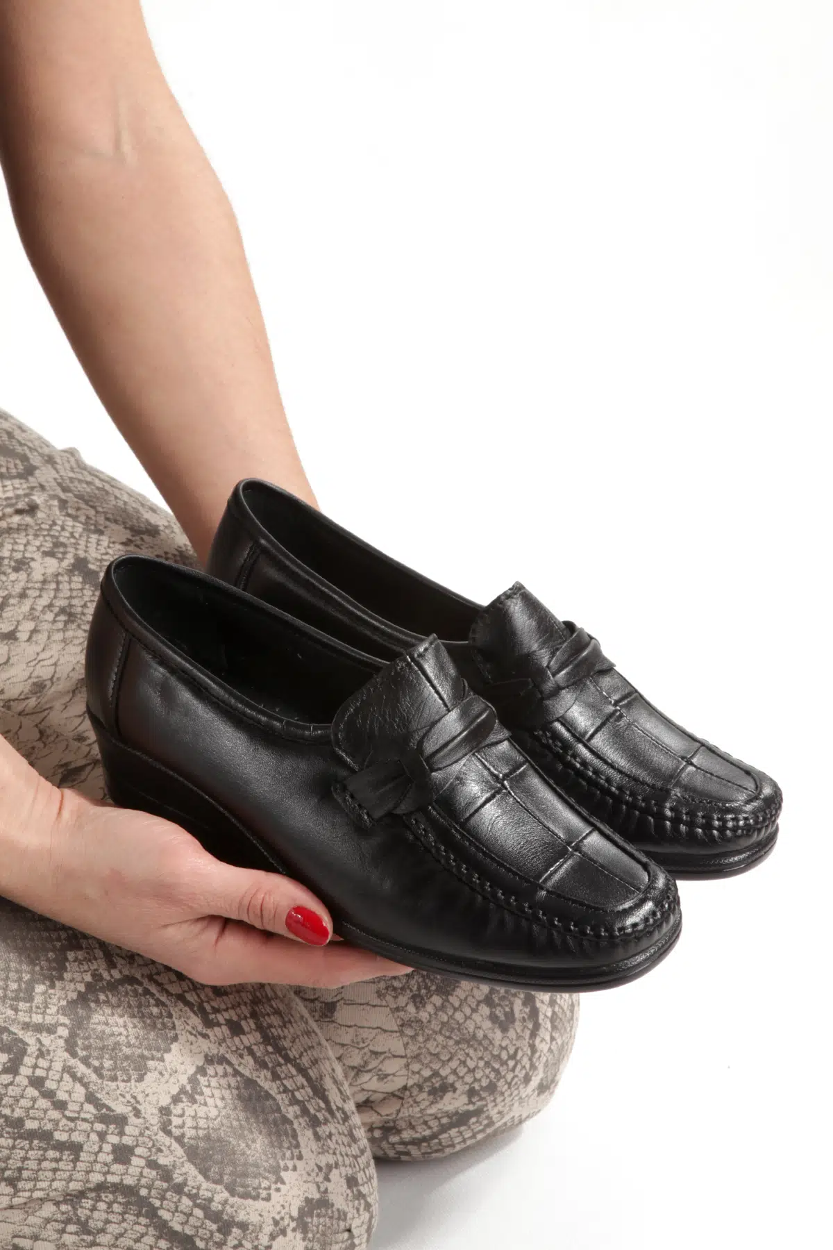 Artı-Artı014-129-0104-1 Hakiki Deri Ortopedik Platform Topuk Kadın Bağsız Hakiki Roc Siyah Ayakkabı