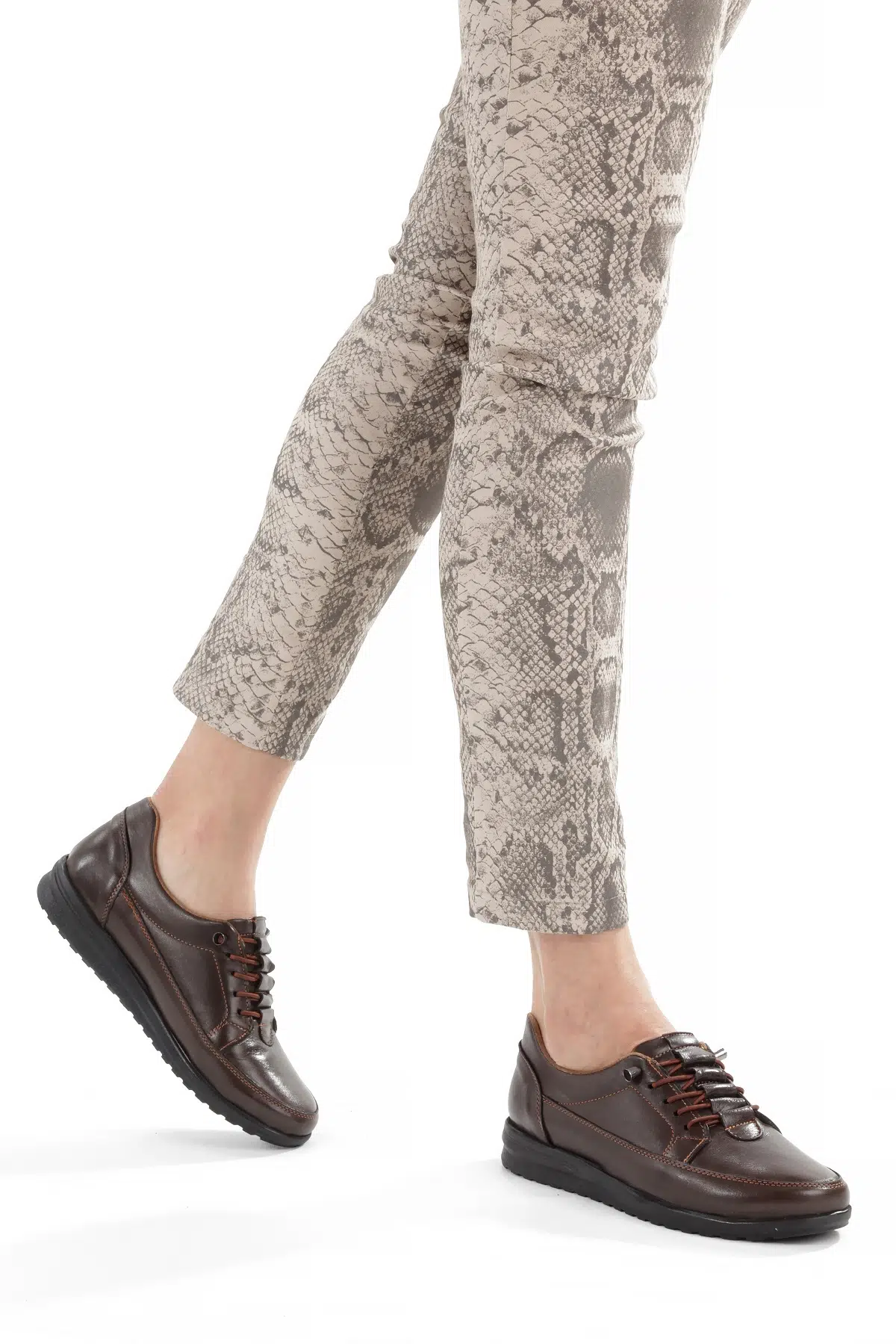 Artı-Artı014-BB-0050 Hakiki Deri Ortopedik Hassas Ciltler İçin Çok Yumuşak Kahverengi Kadın Babet Ayakkabı