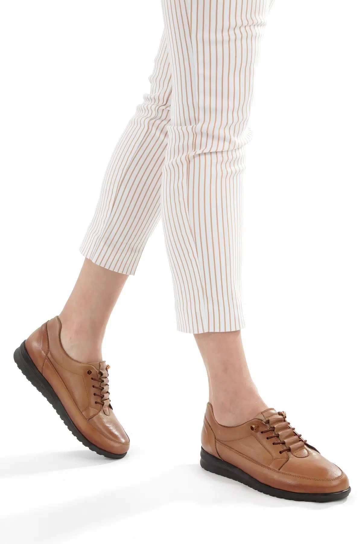 Artı-Artı014-BB-0050 Hakiki Deri Ortopedik Hassas Ciltler İçin Çok Yumuşak Taba Kadın Babet Ayakkabı