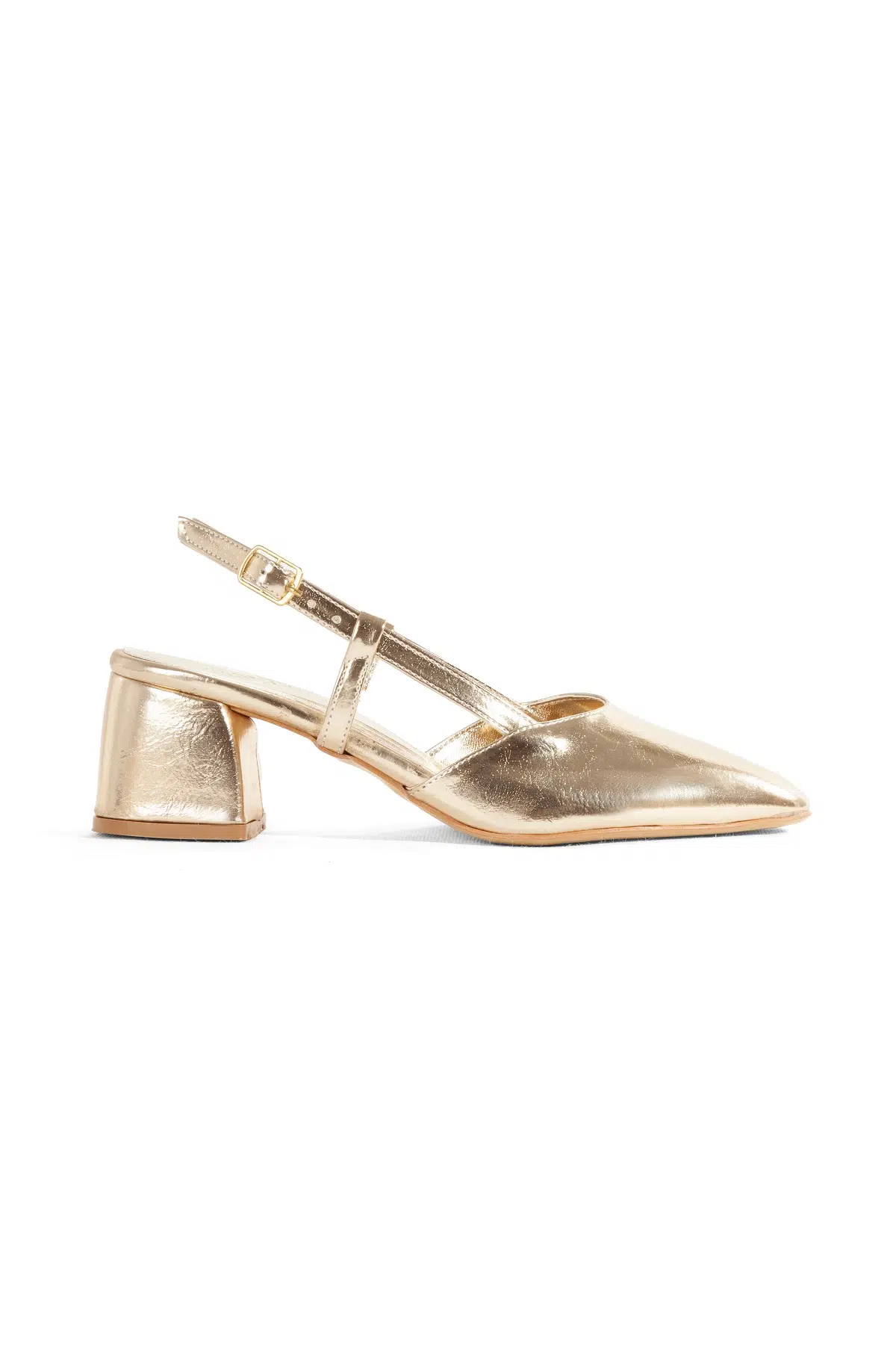 Altın Kaplama Kalın Topuklu Ayakkabı