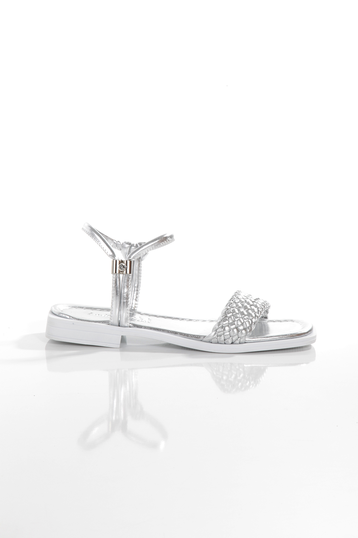 İmia sandali ile tanışın - Gümüş rengi biyeden yapılmış, elde örülmüş üst saya ve içi komaz ip ile destekli saraç örgülü biyeden yapılmış arkalığı ile zarafeti ayaklarınıza taşıyın. Her adımınızda parlayan kristal taş detaylı toka ile bileğinizde lüksün ve şıklığın keyfini çıkarın.